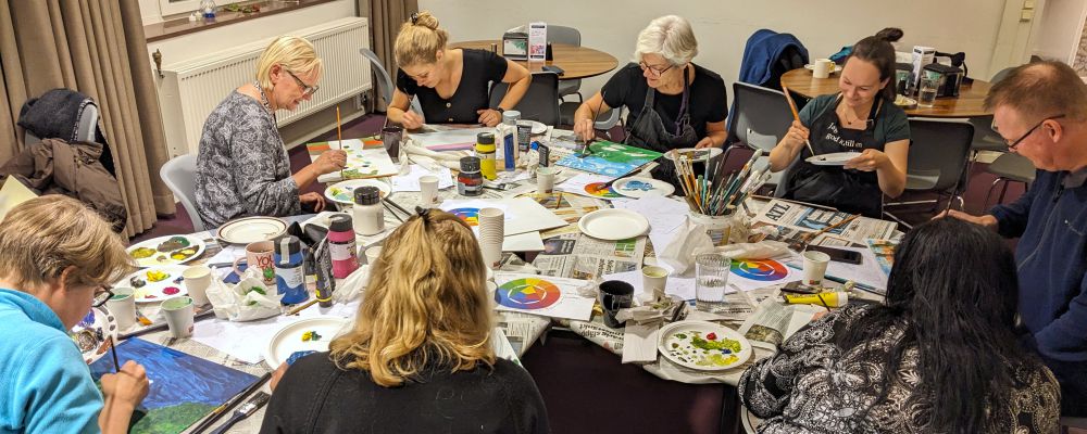 Yesterday I held a little workshop in acrylic painting with this lovely little group! This course was a beginners course with the intention of introducing new creativity desiring people to painting, or freshening up memories with the very basics of the color studies!